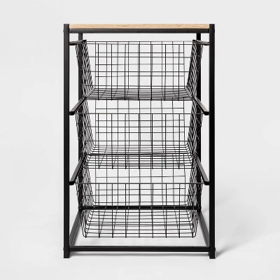 Organize your clothes and shoes with ease with this 3-Drawer Organizer from Brightroom™. This metal closet organizer brings practical storage to your space. It features a vertical design with three spacious slide-out drawers to provide ample space for universal storage, and the wood top creates attractive space for display. The wire frame construction provides ventilation and the color selections can easily coordinate with any décor aesthetic.