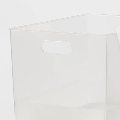 Keep your everyday essentials organized and easily accessible with this Extra Large Multipurpose Storage Bin from Brightroomâ„¢. The plastic storage bin features a spacious design to provide ample space for universal storage, and the clear design makes it an easy pairing with other decor. Complete with side cutouts for easy carrying from room to room, this multipurpose bin is great for stowing away extra towels, linens or blankets to keep your home looking neat and tidy.